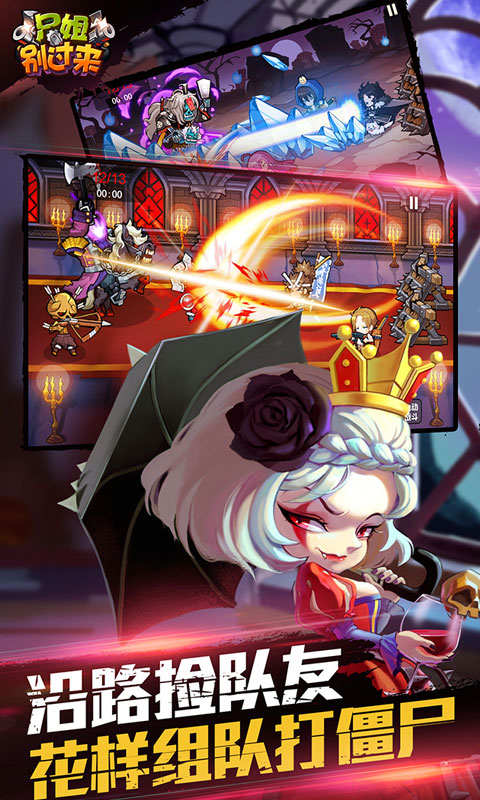 《尸姐别过来》是一款Q萌画风的僵尸题材动作卡牌手游。僵尸危机席卷全球,被主角光环砸中的你,变身救世英雄,沿路捡队友打僵尸,畅享指尖上的环球战斗!从近百位英雄中选择四位组成自己的战队,对抗迎面袭来的一波波僵尸。英雄各怀绝技,选择不同搭配,对抗不同技能僵尸,享受策略布阵乐趣。点击画面控制英雄走位,躲避僵尸致命攻击。闯荡全球关卡,从美国打到日本,从埃及打回中国,成为拯救世界的末世英雄!