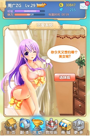想要过一个温馨浪漫又充满激情的情人节,或是希望过一个没有俗事烦恼的情人节?无论你是单身还是已有家属,来《爱妹大作战》绝对都不会失望!专业为男性打造的卡牌游戏,满足你的渴望!有爱妹不寂寞,天天都是情人节!