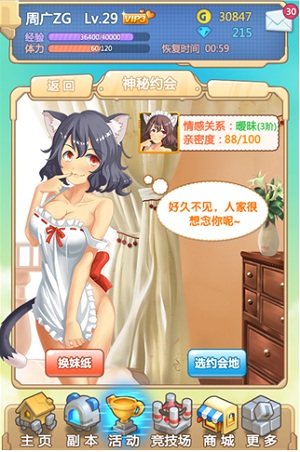 话说对于单身屌丝,对于这次的情人节可能这样的态度:“这么多年,终于能在2月14日这天过节了,话说该吃什么馅儿的汤圆呢?”真是一个悲伤的故事,说多了都是泪。没有妹纸的寂寞难友们,你们的救星就是《爱妹大作战》!在这一天,和你心爱的妹子约会、送她节日礼物、最后再深情告白,进入少儿不宜的环节!!这些事,《爱妹大作战》里全都为你考虑到了!更让人把持不住的是,如果你精力充沛,还能跟不止一个妹子做这些OOXX的事情。传说中的夜遇十女,在爱妹里真的可以考虑一下!
