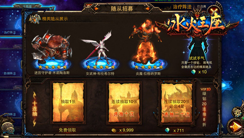 随从系统,在《冰火王座》中有另外一个霸气的称呼——神魔追随者系统!游戏中,玩家可以召唤各种各样的随从为自己而战,从普通的野兽、人类战士、精灵射手,到强大的恶魔、妖精,甚至还有战力无边的奥林匹斯众神、上古虚空恶魔,女武神、雅典娜、炎魔……无数强悍的神魔都有可能响应你的召唤。