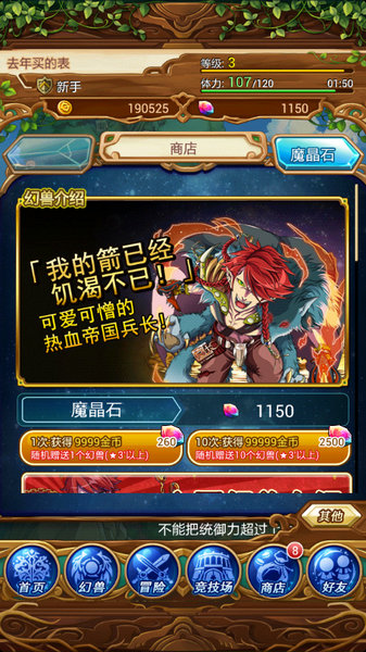 【幻兽获取】玩家可通过魔晶石抽幻兽卡,也可击败副本3星以上BOSS获得幻兽碎片,集齐碎片也可兑换幻兽。此外,玩家利用扭蛋券也能获取幻兽卡或碎片。