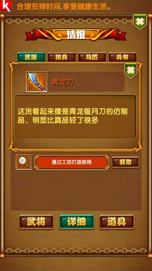 除了使用的武将信息之外,情报系统中还收集了装备目录和道具目录,所有《媚三国》中出现的黄贝和道具,都可以查询到具体的掉落。实乃练级打怪,居家旅行必备良册。