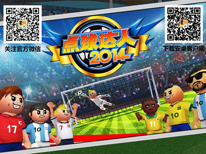 点球梦之队,爽翻世界杯!点翼科技全球首款实时点球对战手游《点球达人2014》活力内测火爆进行中!Q版人物形象、活泼欢快的音乐、丰富的对战模式、海量搞怪道具、前所未有的个性养成等海量玩法High翻天,让你在指尖上玩转足球!
