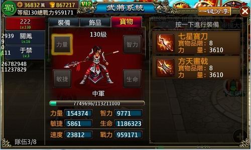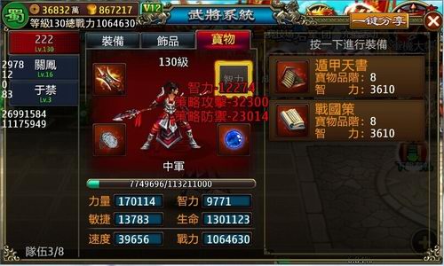 相信部分玩家先前已见过最顶级的八阶宝物。但系统设定:第一套八阶宝物,每人只能获得一个!总有一股“花不全开月未圆”的忧伤?现在,全新的第二套八阶宝物闪亮登场!能否实现凑齐全套、披挂齐整的心愿呢?请主公们自行探索吧!(第二次被读者殴打中……)