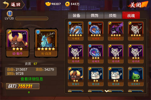 探索远古秘境,收集战魂卡牌的新玩法上手毫无难度,真正做到了简单有趣,让乐趣与战力成倍上升。玩家可消耗一些铜钱,从“地狱”、“人间”、“仙界”三个区域获取不同星级的远古战魂或兑换战魂卡所需的材料,包括紫水晶、半夏、孔雀王翎、彩翼鹭羽等。收集满足够的材料可兑换成相应星级的战魂卡,穿戴后即可大幅度提升角色的属性及战力。