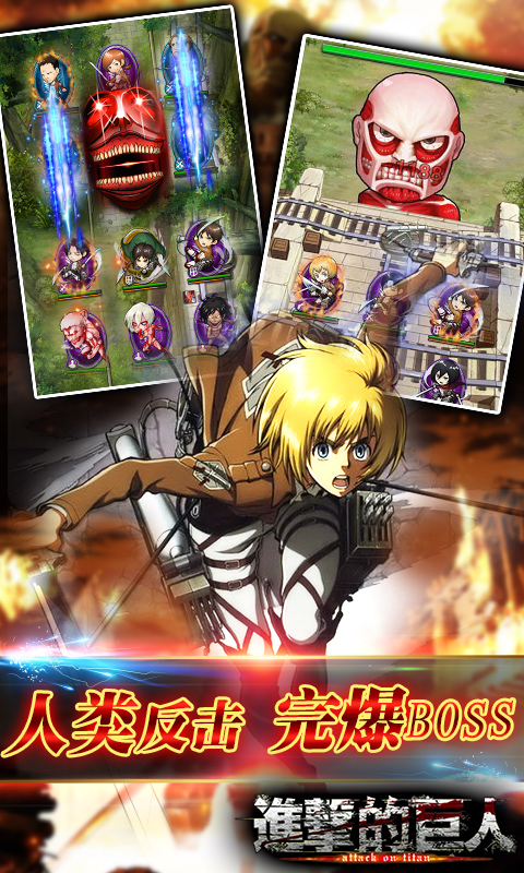 由全球上百万动漫迷追捧的火爆动漫改编的同名手游《进击的巨人》人气不断爆棚,公测以来众多玩家在线上打响复仇之战!与此同时,军团系统即将上线,大战迫在眉睫,全线玩家集结,整装待发准备作战!这一场人类反击战不能幸免,为了让人类能够安定的生存,运用军团的力量,把巨人一个不留的驱逐出去!