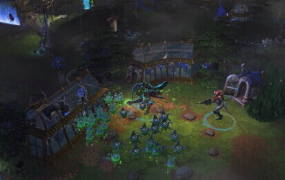 风格迥异的战场无疑是《风暴英雄》最受关注的游戏特色之一,每个战场内的特殊奥秘都为每场游戏创造出无数的战术可能性。在去年暴雪嘉年华公布的四个战场:黑心湾、诅咒谷、鬼灵矿和巨龙镇的基础上,最新的第五张地图——恐魔园也在ChinaJoy上与中国玩家见面。独具匠心的设计师为这张新地图赋予了白天和黑夜的变化:当夜晚来临时,夜行恐魔将会出现在地图上的花园区域中,同时所有的雇佣兵营地怪物将会消失。夜晚只有在所有夜行恐魔都被击杀后才会结束。所以,地图的变换及日夜循环是由玩家来掌控的。究竟是维持黑夜还是回到白天,将成为战略的重要部分。