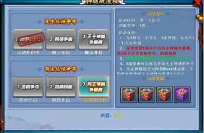 1) 当无主神城被占领后,下一周起,其他非占领神城的帮派可报名争夺有主神城;