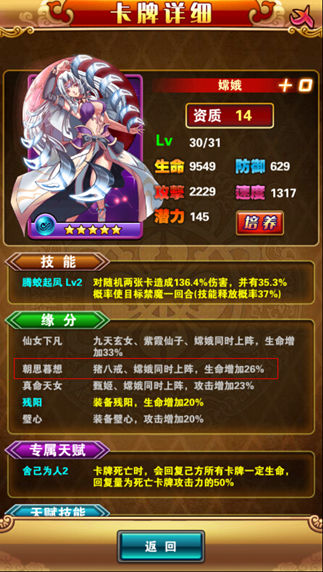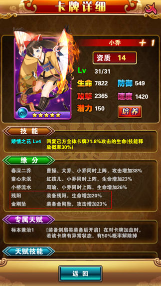 还有一点就是,每张卡牌拥有的缘分系统数目是不定的,少的3条,多的会有5条,这主要取决于卡牌角色本身的故事有多少,互有纠葛的其他角色越多,缘分系统的数目自然就越多了。