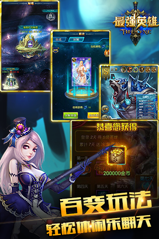 《最强英雄》还拥有丰富多样的百变玩法,乐趣更多,喜欢PVE的玩家可以随着紧张刺激的主线剧情进行征战,体验精彩的游戏剧本;偏爱PVP的玩家可以在竞技场大显身手,顺便获得限定英雄、高等级武器等丰厚奖励,可谓名利双收;此外秘境等待玩家去征服探险,千夜之塔有BOSS求虐;为了升级守护玩家之间互相抢夺碎片更是你来我往好不欢乐;据悉游戏不久还将开启更多玩法,包括英雄试炼、夺宝奇兵、还能收集英雄图鉴满足众多“收集癖”玩家,丰富玩法彻底告别无聊的刷本战斗。