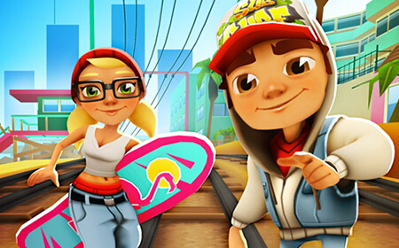 《地铁跑酷Subway Surfers》 是一款带有美式街头风格的跑酷游戏 。躲避迎面而来的火车!帮助高级、技巧娴熟以及毫无经验的新玩家逃避性情乖戾的检查员及其斗牛犬的检查。游戏的背景设定在地铁铁轨上,玩家要帮助Jake和淘气的小伙伴们躲避警察的追捕,同时往来的地铁给游戏增加了挑战难度。