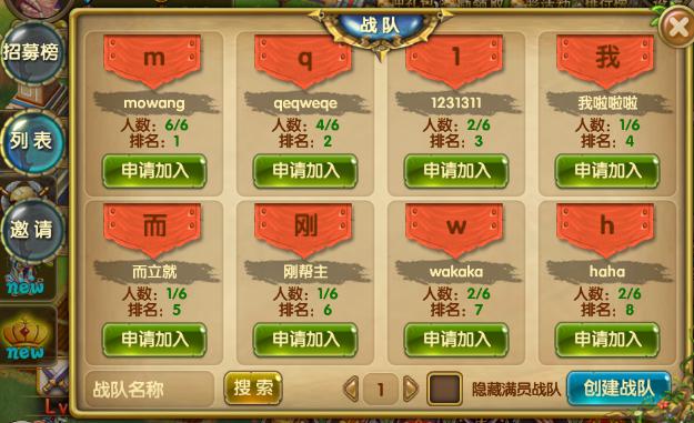玩家到了18级,系统就会自动解锁“战队系统”,此时玩家就可以在战队列表中查看当前服务器已有的战队,点击下方的“申请加入”加入一个战队或者创建一个战队。
