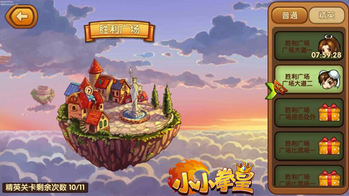 除了难度和奖励提升之外,全新精英关卡在画面表现上也随着《小小拳皇》游戏版本的不断更新优化,变得异常华丽而神圣,玩家们将要挑战的关卡是一座完全浮在苍穹之巅的天空之城,站在这里不仅可以看到那真正如棉花糖般柔软的浮云,还能听到来自神秘岛悠扬的乐曲,脚下稍不注意就能滑到天河之中,顺着那一泉天水漂流直下,感受一下飞来瀑布的放肆和自由……这里是《小小拳皇》的一大仙境。