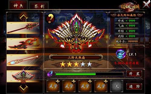 玩家只要在神兵系统游戏界面累计登录天数,就可以激活对应兵器,而这些兵器可以直接增加玩家的战力,登录天数越多,能激活的神兵就越厉害。屌丝若想与大神们并肩战斗,这个屌丝神器就可以助你一臂之力的。