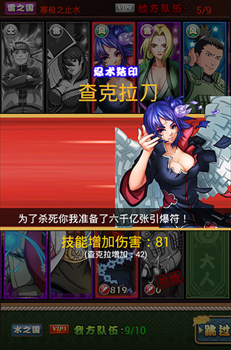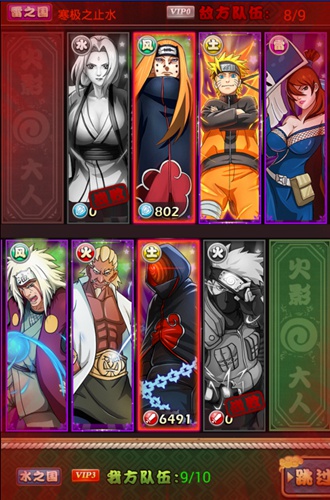 《火影大人》也正是看中了原作特有的忍者战斗特色,在游戏中植入“忍界大战”这一概念,创造出国战这一特色玩法。在游戏中,玩家一开始就被分在火之国、风之国、水之国、雷之国、土之国这五大国中,当国战开启时,玩家将代表本国掠夺他国资源,瓜分别国领土,五大国激烈冲突,一触即发!