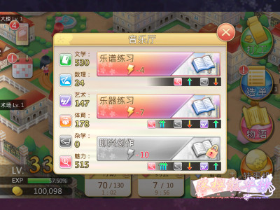 《落樱散华抄》中还拥有高自由度的读书和打工系统,玩家可以在校园中学习深造,选择不同的课业去学习,培养自己的特长,或是当一名全能的学霸。而与不同的女主角交往,则需要不同的学力要求,玩家需要从中取舍,打造属于自己的校园生活。而打工系统也是游戏中不可缺少的一部分,是获取金钱的最直接有效的方法。而玩家的学力水平,也决定了打工时可选的职业,如果艺术值高就可以去美术馆打工,若魅力高就可以去俱乐部打工,玩家以此充实自己的财富,去和女主角们约会,一步步迈向高富帅之路。