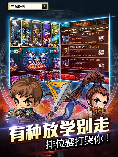 《五杀联盟》引入LOL传奇理念“排位赛”,让玩家通过PK竞技争夺最强王者的殊荣,除了游戏的战斗方式和运行平台有所不同之外,《五杀联盟》几乎与LOL无异(排位晋级不再当心遇到小学生了!)