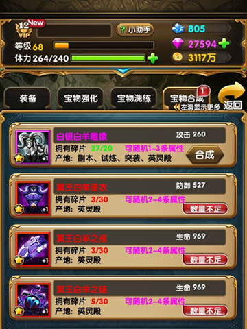 通过《进击吧!勇者》“宝物合成”,勇者们能够合成出想要的任何宝物,青铜、白银、冥王圣衣,哪个才是你所追求?合成宝物所需的“碎片”,可以通过“英灵殿”、“副本”、“试练”、“突袭”等地方获得,小伙伴们只要动动手指就能收集完成,极品神器逃也逃不掉,快快进入游戏狂嗨起来!