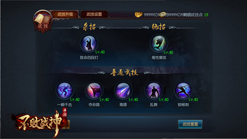 《不败战神》手游创新推出丰富多变的武技体系。武技升阶不仅实力暴涨属性增强,而且可以领悟杀招和绝招两大特色武技。正所谓置之死地而后生,绝招领悟攻击加成,杀招领悟出奇致胜。颠覆传统等级制战斗,越阶战斗逆袭PK任你体验。此外,小说中主角的高阶魂将想必让众玩家艳羡不已,《不败战神》手游特推出血脉出战玩法,玩家不仅可以让血脉守护上阵厮杀,而且可以使血脉守护在人形态和血脉形态之间切换战斗。