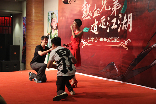 2014年9月13日下午,玩蟹科技精心筹备的“2014《大掌门》热血兄弟?逍遥江湖玩家见面会”正式拉开了帷幕。近200位玩家朋友及媒体相聚在北京九朝会,见证并参与了此次武林聚会。整个会场人气爆棚,笑声不断,见面会更是在热烈的氛围中圆满成功!