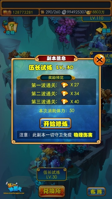 很多玩家在游戏中反应,武将升级太慢,主线副本只能升级主角等问题。本次更新,《暴打魏蜀吴》开启的修炼岛系统,正是为解决武将升级而开设。修炼岛中,玩家会面临3波修炼傀儡的挑战,中途无法恢复生命,而且修炼傀儡免疫物理攻击。主公们获胜后会赢取数额不等的试炼水晶,再用试炼水晶换取经验道具来提升武将等级。