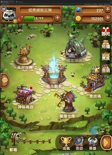 初进游戏,第一感觉界面与首测有了很大变化,可以看到游戏的下方出现了条状快捷栏。把之前放在建筑里面的功能移到了快捷栏中,原本略显拥挤的主城清爽了不少,副本的入口改在了正中间格外醒目的位置,放眼可见,副本入口两只龙头格外呆萌,而且其他建筑都具有很强的立体感,战斗副本风格明显,很好的与其他系统设定区分开来。