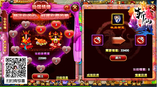 《全民斩仙》依托腾讯强大的社交体系,同微信和手机QQ深入合作。玩家在游戏中可直接邀请真实好友一起玩游戏,进行双修,快速提升恋爱经验。不仅如此,《全民斩仙》还专为情侣玩家设计了“深海之恋”副本,仅允许两人进入。经过一场激动人心的搏斗后,情侣感情不仅快速升温,还能获得特殊道具碎片,合成婚戒,坠入爱河,成为人人羡慕的神仙眷侣!