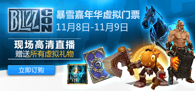 暴雪嘉年华中文官网(Blizzcon.cn)将从10月31日暴雪嘉年华开赛周起,提供暴雪嘉年华全部电竞赛事的免费全程直播,包括:《炉石传说》、《星际争霸2》、《魔兽世界》竞技场世界锦标赛,以及《风暴英雄》表演赛。如果你购买了首次登陆中国的暴雪嘉年华虚拟门票,不仅可以收看开发人员座谈(分享游戏开发的幕后故事)、Cosplay比赛、闭幕show等付费内容,还可集齐暴雪全系五款游戏内礼物,并限时抢购2014暴雪嘉年华精选周边。详情访问:http://blizzcon.163.com/event-info/tickets/ticket-overview 。
