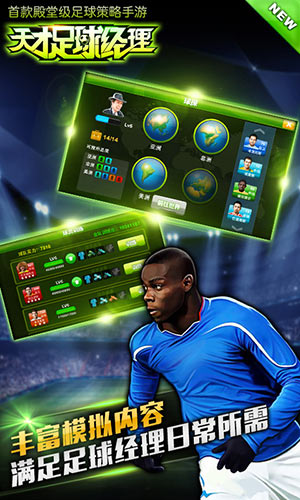 《天才足球经理》,由业内知名体育类游戏开发商旭游网络倾力打造,该作集开发团队此前数款足球游戏研发经验及市场反馈于一身,通过模拟策略形式再现足球世界的魅力。游戏采用英超俱乐部教练制,玩家可统一管理转会,比赛,训练等一切事物。欧洲五大联赛,104支球队,4320名真实球员数据完全再现,让玩家身临其境感受管理球队,率队冲冠的乐趣。