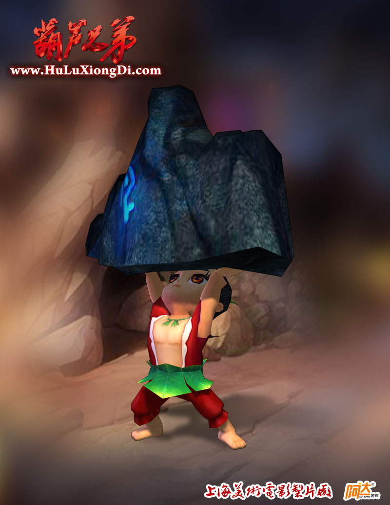 大娃(赤),七兄弟之首,翻天掀地,是力量的象征,力大无比可搬起高山,生来就是一个大力士。