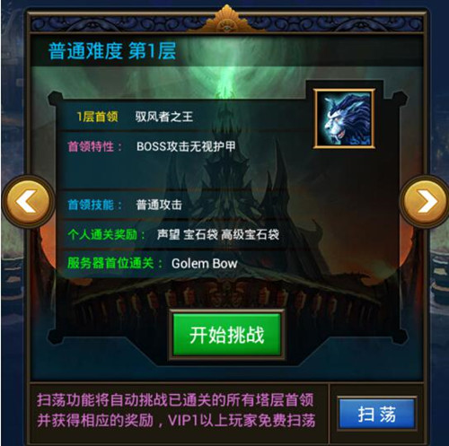 玩家通过击败当层的守关怪物来解锁下一层,击败当层的怪物可以获得声望、宝石袋和高级宝石袋。