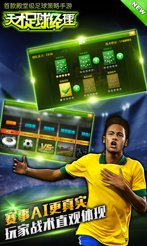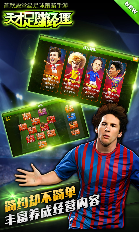 《天才足球经理》由业内多年从事职业体育游戏的顶级开发商打造,内容集合主流足球模拟精髓的同时,为玩家提供了更多具有创新意义的移动平台体验。游戏采用英制俱乐部教练制,玩家可统一管理比赛、训练、转会等丰富事物,仅欧洲联赛就实现了五大赛场,多达104只真实球队搬上手机,4320名真实球员不容错过。