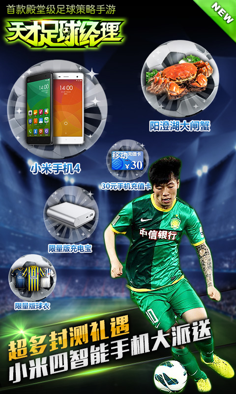 《天才足球经理》的安卓系统封测启动,由新浪超级体育联手白橘子联合发行。此次封测活动力度空前,且专业性也同游戏一样,极具权威价值。封测期间将开展网络世界杯及俱乐部排位赛等内容,奖品设置包括小米4智能手机、正版球衣、俱乐部战衣、阳澄湖大闸蟹、手机话费充值卡等,所有封测期间登录的用户,还有机会抽取充电宝实物奖品,迎接全新足球体验,共享精彩游戏生活。