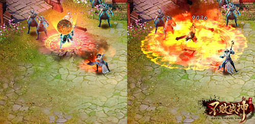 不同于以往游戏技能一键释放的方式,《不败战神》通过摇杆调整方位,三连击与滑动释放武技自由切换攻击方式,多样化操作方式带来指尖劲爽战斗。
