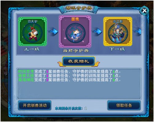 《神雕侠侣》之“天下无双”上线之后,诸位侠士的帮派中会多出一只萌物——它就是我们威武雄壮的帮派守护兽。帮派守护兽将随着大侠们的帮派一起成长,并能随之变换外形,从呆萌的功夫驴成长为霸气的剑齿白虎,完全不是事儿。而大侠们也可以在帮派守护兽这里领取神秘任务,既能帮助守护兽加速成长,还能领取丰厚奖励,何乐而不为!