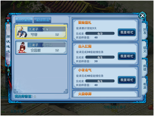下月初上线的新版本《神雕侠侣》之“天下无双”为了纪念杨龙这段感人至深的师徒恋,也随之推出了超级贴心的师徒系统,让诸位大侠纵横江湖更加惬意轻松。自此少侠们闯荡江湖不再是孤身一人,有了亲爱的师父的悉心照顾,成为大侠指日可待。而师父们收了乖巧的徒儿,不仅江湖会变得更加多姿多彩,还会获得徒弟充值金额的5%作为回报。师徒之间心连心,《神雕侠侣》手游为大家倾力营造一个充满人情味儿的情义江湖。