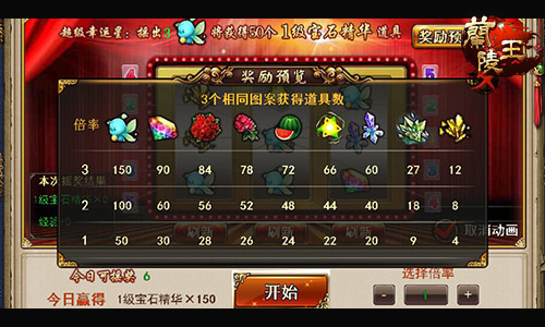 趣味玩法摇摇乐为经典的老虎机玩法,玩家每天可摇奖的次数为10次,其中有5次免费的摇奖机会;摇奖只需将3个相同的图案在系统规定的5条直线上排列起来就可获得道具和经验奖励,如果摇出花楹图案,玩家可获得超级大奖。除此之外,新增的跨服声望商店,玩家每周六,日下午参与跨服战场可获得跨服声望,跨服声望可在跨服声望商店中兑换各种物品。