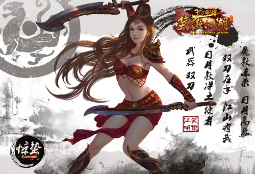 与唐门的高冷御姐大为不同,新门派日月的女主角将是一位来自波斯古国的神秘少女,手持锋利双刃,却表现出异于同龄人的沉着冷静,身手敏捷干脆利落,薄纱遮面寡言少语,刻意地保持低调,使得这位异域少女更显诡秘。