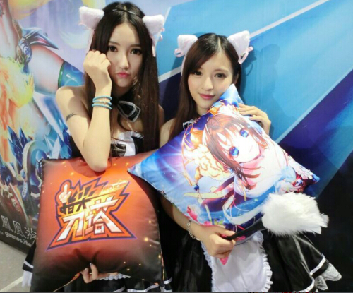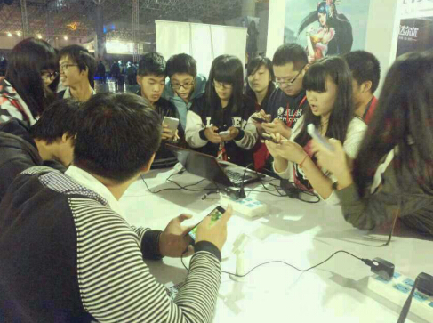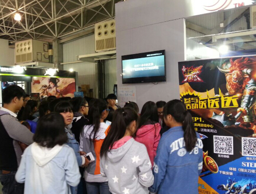 玩家在展台下载并试玩《指尖刀塔》参与活动,便有机会获得凤凰游戏的游戏周边礼品和豪华版定制抱枕。由于玩家太过热情,试玩机和礼品派发处前大排长龙,现场热闹非凡。