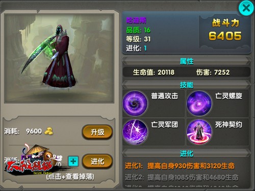 【技能2】亡灵军团:召唤多个骷髅兵(亡灵射手、吸血鬼、堕落天使),协助作战,骷髅兵基础死神30%属性