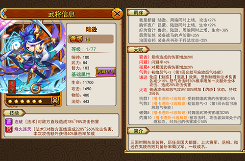 我把陆逊排上来也许不少会有意见了,但小编真心认为陆逊算是吴国加强最多的,基本上过了第一回合,陆逊就享受了减伤一半的buff,如果是先手的话,可以就说是全程半伤了,再配合谦逊的天赋,陆逊会比甘宁还硬。相比而言,贾诩的虚蛊10,诸葛的恃强10,张飞主宰10这些大致同类的减伤天赋触发机会都小于陆逊。如今的书生陆逊,算是有些符合夷陵之战的情况,先被刘备打了很久,最后一战而胜。