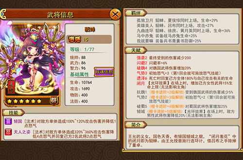 看到这估计不少人觉得小编搞笑了,这破将还第一。我承认,在土豪群雄阵容里,貂蝉恐怕还得和张角争个上场名额,但这不是实力排行,而是改变的排行。貂蝉的价值基本就是两个技能,遗泽6(可参考孙权遗泽8)和倾城光环,由于实力将全是男性,貂蝉只要活着,就是敌方全体有了一个减伤20%的debuff,极为实用。考虑到不少玩家玩不起限时的橙将,对普通群魏玩家来说这可以说是一个成本最低的百搭将,当然牺牲战力是必然的了。