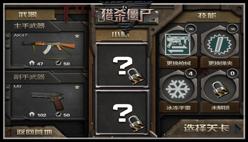 玩家每次通一关后,都可回到自己的营地进行建造或升级。武器。战车等一系列高大上产品都在你的军营里面产出,产出的道具不仅仅增加了你活命的机会,也可助你更好的冲向猎杀排行榜的顶端。